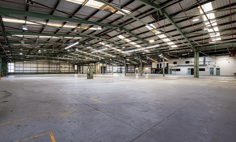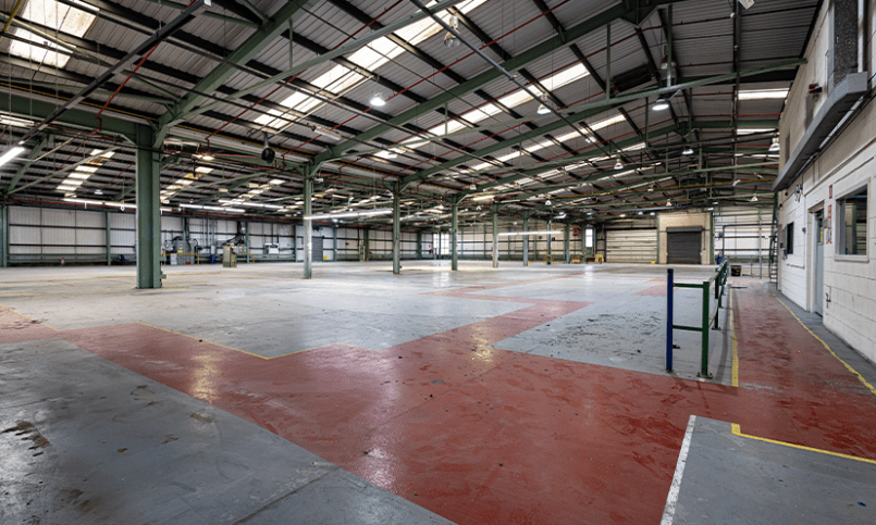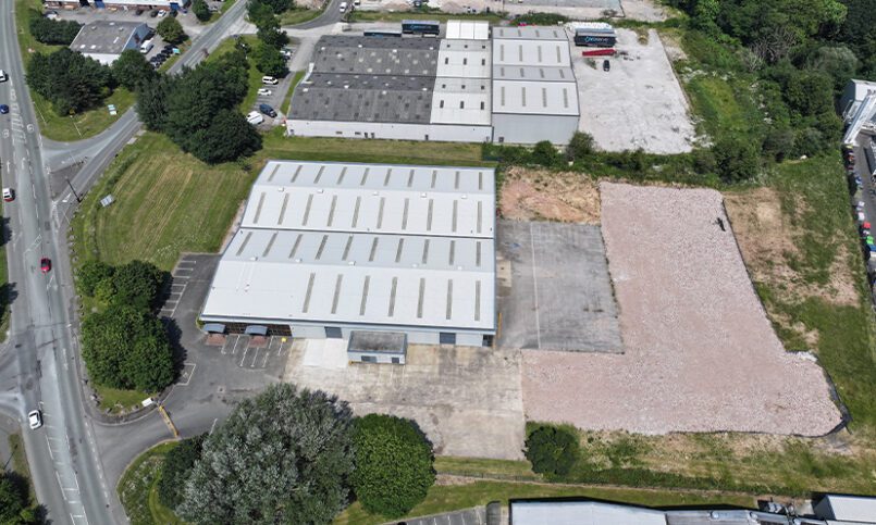 Unit 13 is a 36,890 sq ft industrial unit available to let, with 1.7 acres of yard space in a prominent location on Wrexham Industrial Estate with good roadside visibility.